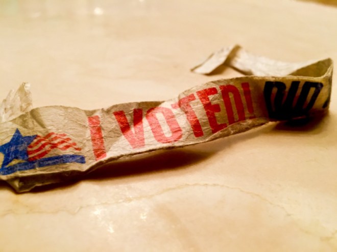I wore my voting receipt bracelet for six more months, until it broke off one morning in April while I was brushing my teeth.